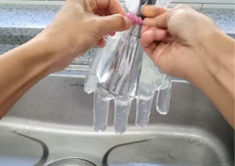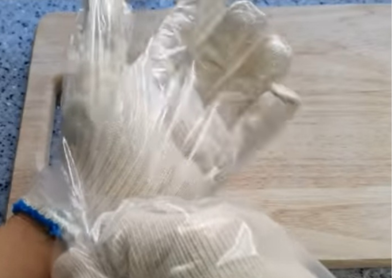 두 번째로 비닐 장갑을