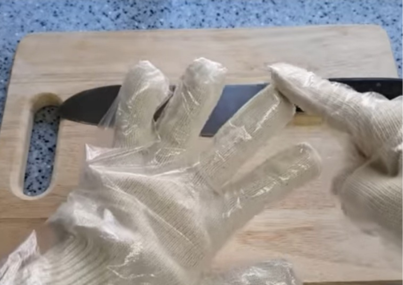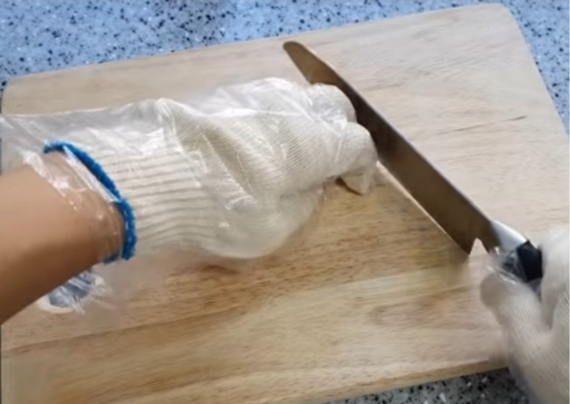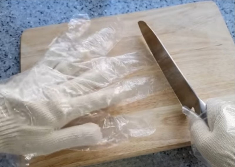 비닐장갑 칼로 자르기