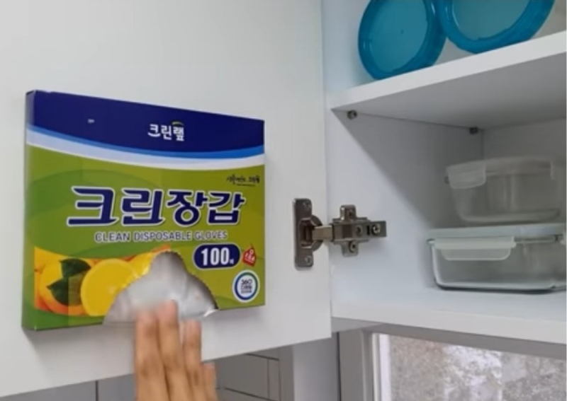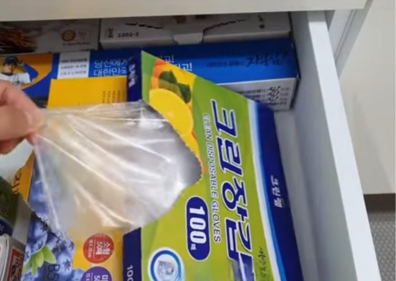 7번째로 비닐 장갑을 서랍에 넣어