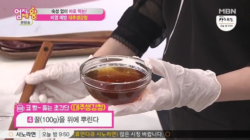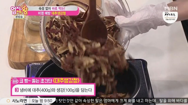 완성된 대추생강청은 잼처럼 빵에 발라먹어도 좋으며 가래떡위에 올려 먹어도 좋고 요리할때 매실청 대신 사용해도 좋으며 따뜻한 물에 넣어 먹으면 대추생강차가 된다고 합니다.