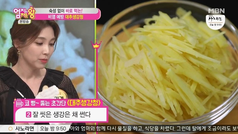 – 잘 씻은 생강 100g을 채썰어 줍니다.