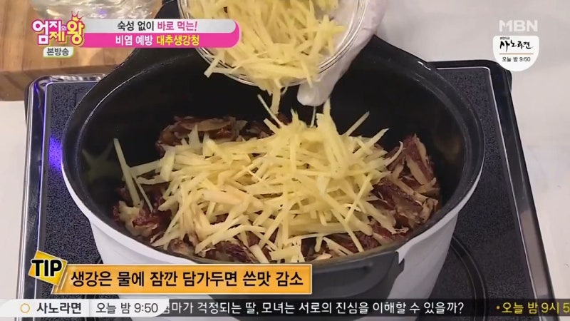 팁. 생강을 넣기 전에 물에 잠깐 담가두면 쓴맛이 감소한다고 합니다.